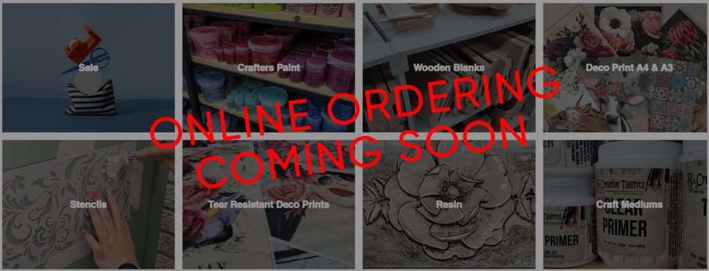 Soon, you’ll be able to browse and order your favourite items right here – from Crafters Paint to Resin Embellishments, Wooden Blanks, Deco Prints, and more.